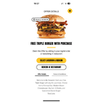 Carl's Jr has Free Triple burger with ($1+) purchase offer in the app.