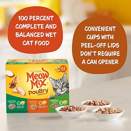 24-Pack 2.75-Oz Meow Mix Poultry Selections Wet Cat Food (Variety Pack) $11.24 w/ S&S + Free Shipping w/ Prime or on $35+