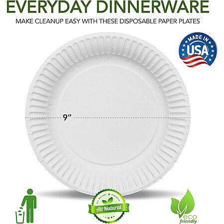 [$17.39] 500 x 9-Inch Paper Plates Uncoated, Everyday Disposable Plates 9" Paper Plate Bulk, White $17.39