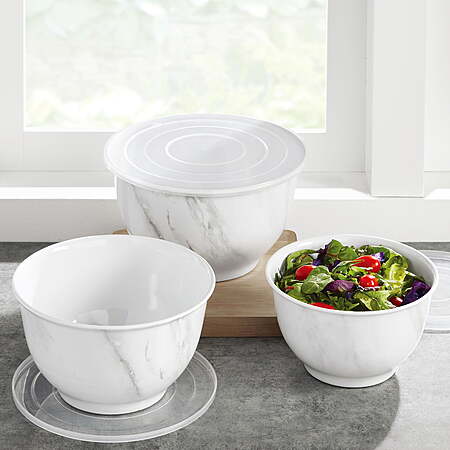6-Piece Better Homes & Gardens Melamine Serving Bowl Set w/ Lids (White Marble Print) for