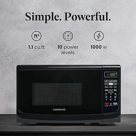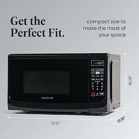 Model: Farberware Countertop Microwave 700 Watts, 0.7 Cu. Ft. - Microwave Oven With LED Lighting and Child Lock - Perfect for Apartments and Dorms - Easy Clean Grey Interior, Retro Black