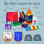 100 PIECE MAGNETIC TILES FOR KIDS PLAY SET: This Playmags Classic Set Lets Kids Build, Play & Learn for Hours of Educational Entertainment; Recommended for Ages 1 2 3 4 5 6 7 8