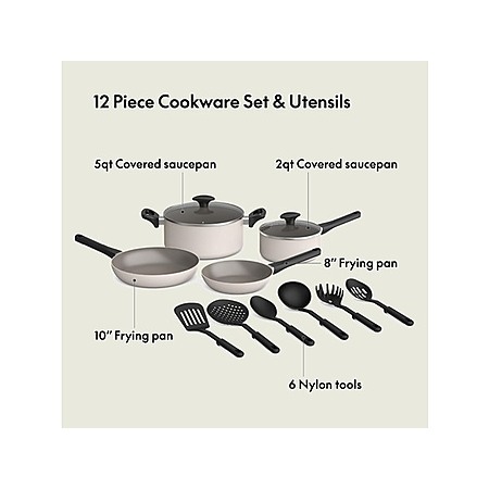 12-Piece bella Cookware Set w/ EverGood Ceramic Nonstick Coating