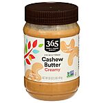 16-Oz 365 by Whole Foods Market Creamy Cashew Butter for $8.99 -