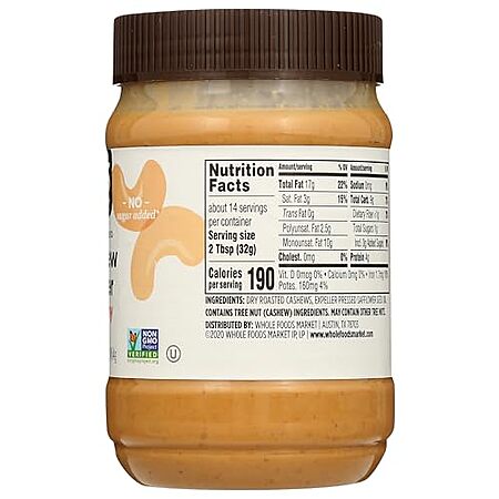 Amazon [amazon.com] has 16-Oz 365 by Whole Foods Market Creamy Cashew Butter for $8.99 - 25% when you 'clip' the coupon on product page - 5% when you check out via Subscribe & Save = $6.29. Shipping is free with Prime or on $35+ orders.