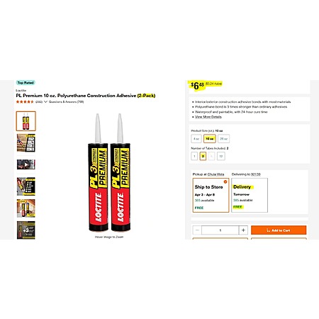 Home Depot has 2-Pack 10-Oz Loctite PL Premium Polyurethane Construction Adhesive on sale for $6.48. Shipping is free or choose curbside pickup where stock permits.