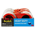 Scotch Heavy Duty Shipping Packing Tape, Clear, Holiday Shipping Supplies, 1.88 in. x 54.6 yd., 4 Tape Rolls with 4 Dispensers $15.59
