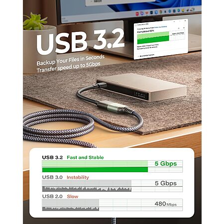 AINOPE 10FT USB 3.0 Extension Cable, Male to Female High Data Transfer Compatible with Webcam,USB Keyboard,Flash Drive,Hard Drive,Printer,,Grey $3.24 after coupon