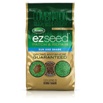 Scotts® EZ Seed® Patch & Repair Sun and Shade is a revolutionary grass seeding product designed to fill in bare spots on your lawn. This Sun & Shade grass seed grows in tough conditions, including full sun, dense shade, high traffic areas and on slopes. Scotts® EZ Seed® Patch & Repair consists of high performance grass seed, continuous release lawn food, and super-absorbent growing mulch material. Scotts® EZ Seed® Patch & Repair Sun and Shade also includes a tackifier to help reduce seed wash-away and a protectant to help keep seedlings safe from harmful diseases. There are three easy steps to success: 1) prep the area by removing dead grass and loosening hard soil, 2) evenly apply EZ Seed® so the area is mostly covered but bare ground is still visible, and 3) saturate with water until no more water is being absorbed and mulch turns dark brown. Plant seed in the spring or fall when daily average soil temperatures are consistently between 55°F and 70°F, or air temperatures between 60°F and 80°F. For best results, keep kids, pets, and lawn mowers off newly planted seedlings until the grass is 3 inches high.
