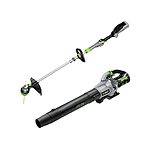 The EGO POWER+ 15" POWERLOAD™ String Trimmer with Aluminum Telescopic Shaft & 615 CFM Blower Combo Kit is an ideal tool combination to get all your yard maintenance completed. The POWER+ 615 CFM Blower delivers airspeeds up to 615 CFM and 170 MPH to power through wet leaves, grass, and other heavy debris. This cordless leaf blower delivers up to 75 minutes of average runtime on a single charge with the included 56V 2.5Ah ARC Lithium™ battery. Its variable speed dial with lock-on button allows you to adjust your airspeed from 200 to 480 CFM for ultimate control. Activate turbo mode to power through heavy debris with 615 CFM. This leaf blower features a high-efficiency brushless motor that delivers long runtimes, low vibrations, an extended motor life, and better performance than premium gas leaf blowers. The included tapered nozzle makes clearing debris in all conditions easy, and IPX4 weather-resistant construction delivers protection from the elements. This quiet, lightweight, and compact electric leaf blower gets the job done faster and quieter than gas. The 15" cordless string trimmer with POWERLOAD™ technology automatically winds your trimmer line. Replacing your string line is as easy as feeding the line into the head and pressing a button. With its telescopic aluminum shaft, easily adjust the shaft length for ease of use and comfort. This EGO trimmer is built with a high-efficiency brushless motor, bump feed line advance, and includes .095" professional cutting line. Both tools are compatible with all EGO ARC Lithium™ batteries to maximize the convenience of cordless and deliver Power Beyond Belief™ without the noise, fuss, or fumes of gas.