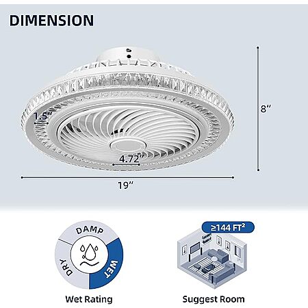Model: YITAHOME Bladeless Ceiling Fan with Light, 20 Inch Modern Enclosed Chandelier Fan with Dimmable Light, 6 Speeds, DC Motor, Night Light, Wind Cycle, Low Profile Ceiling Fan for Small Space - White