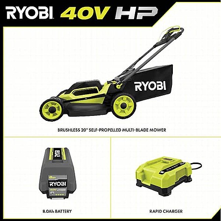 RYOBI 40V HP Brushless 20" Cordless Electric Battery Multi-Blade Walk Behind Self-Propelled Lawn Mower-8.0Ah Battery & Charger RY401260VNM - $500