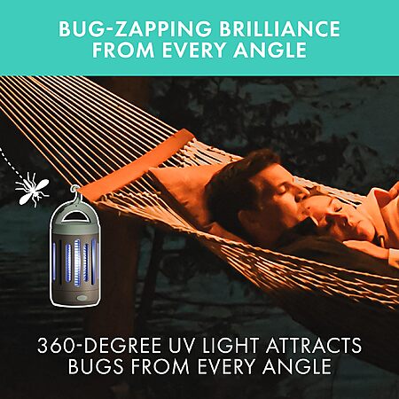 • The 360-degree soft blue light attracts flying insects, while the grid zaps bugs on contact.