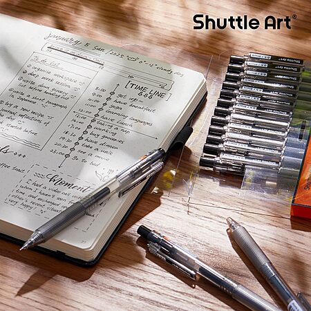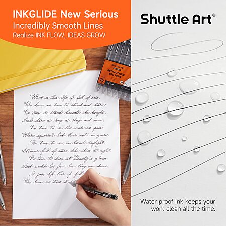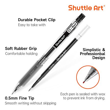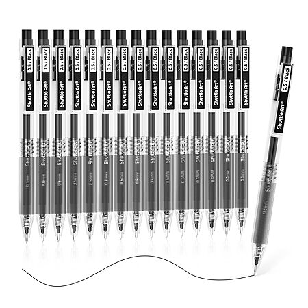 $5.99 Shuttle Art Black Gel Pens, Ink Glide Series 15 Pack Retractable 0.5mm Fine Point Rollerball Gel Ink Pens Quick Drying Waterproof Smooth Writing with Comfortable Grip