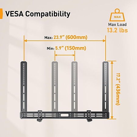 - Adjustable base holder extends 6" and retracts back to 3.5" for fitting different widths of sound bars