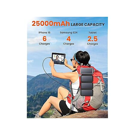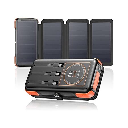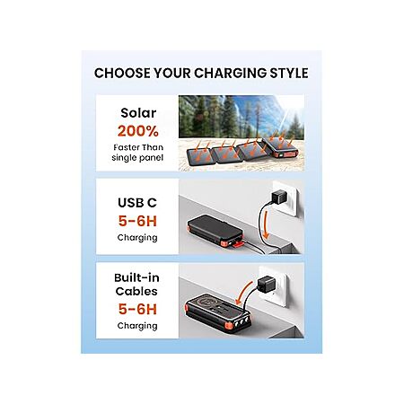 Soaraise 25000mAh Wireless 6-IN-1 Solar Power Bank w/ Built in Cables for