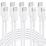 5-pk 6' 60W IWTKenw Charging Cables (2-Count Lightning + 3-Count USB-C)
