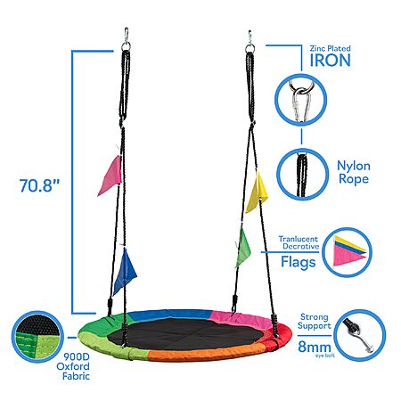 - Large Round Swing: The Playvibe Saucer Tree Swings is 40'' in diameter, which is large enough for your kids and their friends to play together.