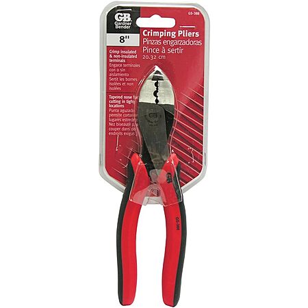 Gardner Bender GS-388 Electrical Pliers, Crimper & Cutter, Comfort Grip, Aluminum & Copper Wire, Hand Tool, 8 in. , Red https://www.amazon.com/dp/B00079LN1Y