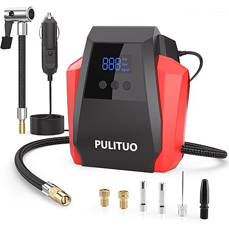 Lightning Deal: Pulituo 150 PSI 12V Portable Tire Inflator / Air Compressor (Blue) $10.85, (Red or Yelow) $11.51 + Free Shipping w/ Prime or on $35+