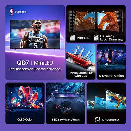 Hisense - 50" Class QD7 Series Mini-LED QLED 4K UHD Smart Fire TV (2025) $350