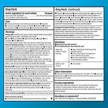 - In the past, I have bought this similar item, small quantity of 50 coated tablets; 200 mg, with its own box from other brands in the drugstore and their direction is to take 1 or 2 tablets every 4 to 6 hours while symptoms persist. Normally I prefer better accountability if it was made in the USA, instead of India."