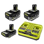 Ryobi One+ 18V 2x 4Ah HP Batteries + 1x 2Ah HP Battery & Dual Port Charger
