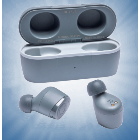 • Available in blue or grey. Sweat/water and dust resistant. 7 hours of playtime on one charge (22 hours of total battery life with the case). Two mics lets you use either bud solo in Mono Mode to make your calls more clear. Comes with 3x pairs Ear Gels (S, M, L).