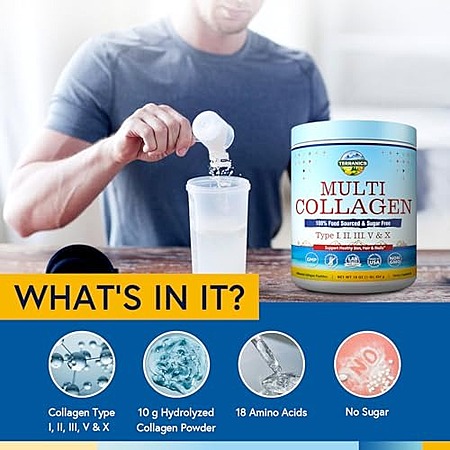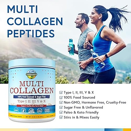 Model: Terranics Multi Collagen Peptides Powder, Type I II III V X Hydrolyzed Collagen for Women+Men, Collagen Supplements for Skin Nail Hair & Joint, Fast Dissolve, Unflavored Colageno, No Sugar, Keto, 16oz