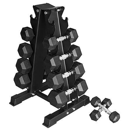 Model: BalanceFrom 150LB Coated Hex Dumbbell Weight Set and A-Frame Storage Rack, 5-25 lbs Pairs