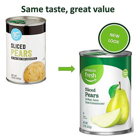 Amazon Fresh, Sliced Pears in Pear Juice from Concentrate, 15 Oz (Previously Happy Belly, Packaging May Vary) $1.39