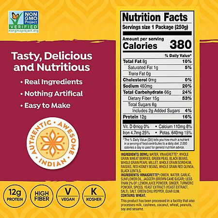 Model: TASTY BITE Indian Protein Bowl, 8.8 Ounce, Pack of 6, Ready to Eat, Microwaveable, Vegan, 12 Grams Plant Protein