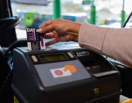 You may purchase a single ride at $2, a all-day pass for $4.50 or multi-days like 7 or 30 options. LYNX stops are identified by signs with a pink bus or pink paw and the Link (route) number below it in black. The numbers indicate which buses serve that stop. Buses stop only at designated LYNX stops.