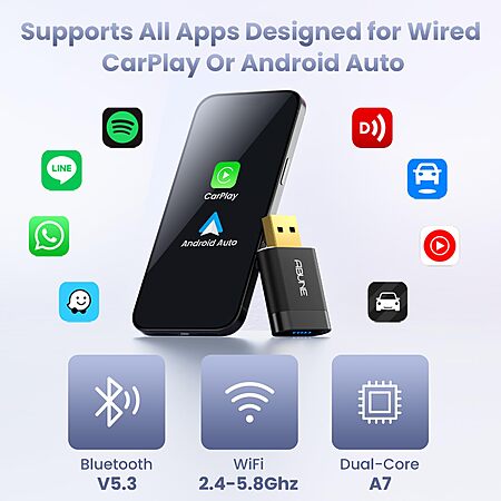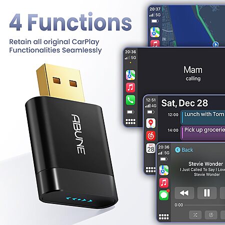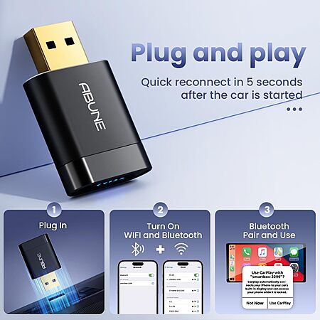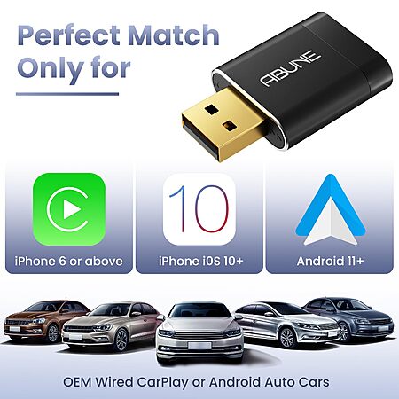 Abune Mini Wireless CarPlay Adapter for iPhone, 2 in 1 CarPlay and Android Auto Adapter $17.99