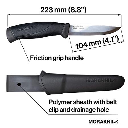 Model: Morakniv Companion Fixed Blade Outdoor Knife with Sandvik Stainless Steel Blade, 4.1-Inch, Black (M-12141)