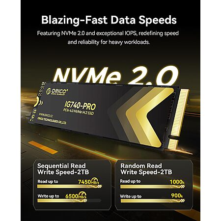 Amazon has the new Orico IG740-Pro 2TB "Industrial" M.2 NVMe SSD with 7450/6500 MB/s Read/Write Speeds and TLC NAND for $112 ($140-20% clipped coupon). It seems to be pretty new--there are a batch of reviews out there, but mostly from the last month or so. The drive has a 5-year warranty and is rated for 1200 TBW.