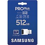Amazon has 512GB Samsung Pro Plus A2 V30 microSDXC Memory Card w/ USB 3.0 Adapter Reader (MB-MD512SB/AM) on sale for $29.99. Shipping is free w/ Prime or on $35+ orders.