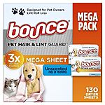 [S&S] $6.16*: 130-Count Bounce Pet Hair & Lint Guard Mega Dryer Sheets (Unscented) at Amazon
