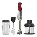 - Includes immersion base, immersion blade attachment, whisk attachment, 3-cup mini-chopper container with three-point blade, and 32-oz blending jar with lid