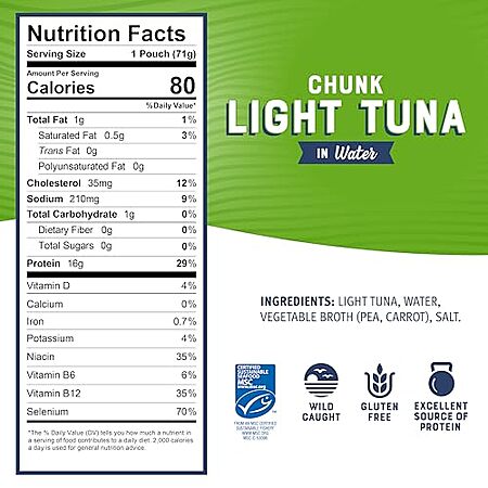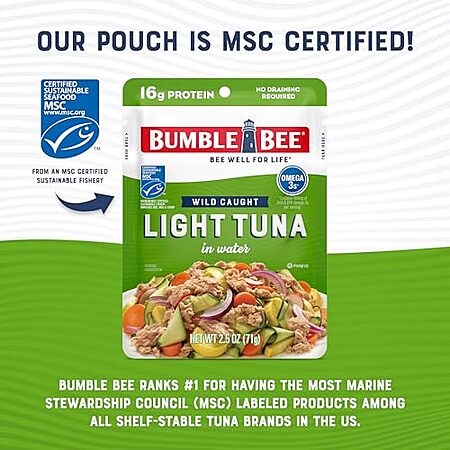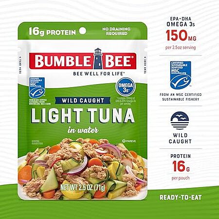 12-Pack 2.5-Oz Bumble Bee Light Tuna Pouch in Water for $12 -