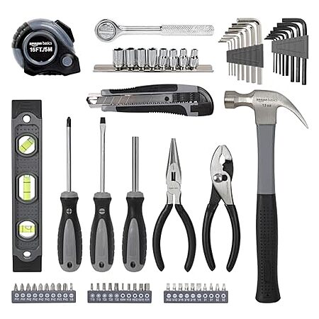 $25.72: 65-Piece Amazon Basics Home Basic Repair Tool Kit Set With Bag at Amazon