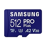 512GB Samsung Pro Plus A2 V30 microSDXC Memory Card w/ Adapter Reader $30 ($23.75 with EPP) at Samsung