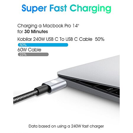 2-Pack Kobilar 240-Watt USB-C to USB-C Charging Cables (3' & 6') $4.49 + Free Shipping w/ Prime or on $35+