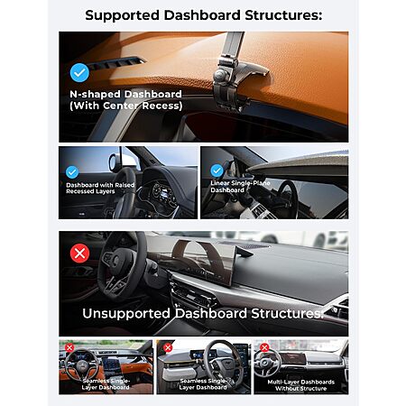 • 360° Multi-Position Dashboard Phone Holder: Dual-axis rotation enables precise horizontal (GPS)/vertical (video calls) adjustments. Road-tested on 2024 CR-V/F-150 dashboards with 2.8" non-slip base maintaining windshield visibility. Fits dashboards (2-12mm thick), rearview mirrors & sun visors. Vibration-dampening pads reduce 68% screen shake (SAE J2380-certified). Includes magnetic phone holder adapter for MagSafe/non-MagSafe devices