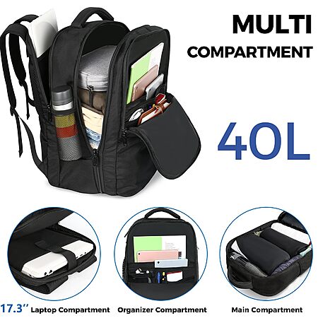 Shengtuu via Amazon has 40L MATEIN Carry-On Travel Backpack w/ USB Port & 17" Laptop Slot (X-Large, Black) for $23.99. Shipping is free w/ Prime or on $35+.