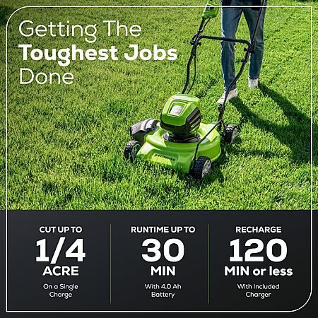 Amazon has Greenworks 19" 40V Brushless (2-In-1) Push Lawn Mower w/ 4.0Ah Battery & Charger for $168.55. Shipping is free.