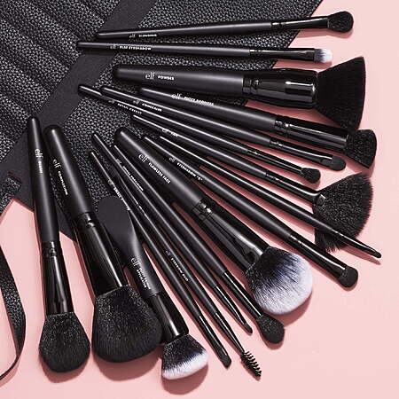 | Product Description: | Get the tools you need to create makeup looks from uber-minimalist to wild-as-e.l.f., and everything in between with e.l.f. Cosmetics Ultimate Makeup Brush Set & Travel Roll. This full brush set has got what you need to apply every step of your makeup, from primer to setting powder to complexion and even eyes. Includes some of our most iconic brushes to help you scoop, buff, blend, and smudge your way to a wide range of gorgeous looks. It’s the perfect set when your makeup brush travel case needs an overhaul. Brush Set Includes: Flawless Face Brush: Face makeup brush to create a soft, natural finish. Putty Primer Brush and Applicator: A dual-ended makeup tool & buffer makeup brush for easy putty primer application. Small Smudge Brush: Small makeup brush ideal for creating smoky eyes. Fan Brush: Use to lightly dust on powder or to contour. Blush Brush: Can be used to apply blush or bronzer. Complexion Brush: Soft, oversized face makeup brush. Powder Brush: Soft & versatile face makeup brush for powders. Small Precision Brush: Creates thin lines and precise coverage. Fluffy Eye Blender Brush: Soft eye makeup brush for blending & blurring. Detail Crease Brush: Applies eyeshadow precisely into the crease of the eyelid for an expertly blended look. Eyeshadow “C” Brush: Curved eyeshadow brush for blending & diffusing. Flat Eyeshadow Brush: Ideal for applying cream or liquid eyeshadows to the eye area. Concealer Brush: Flat concealer brush to cover imperfections. Eyebrow Duo Brush: Dual-sided brow brush includes a dense angled brush on one end to fill in and contour brows while the wand side combs and shapes hair into place. Small Angled Brush: Perfect for precise color application and creates even, thin, and straight lines every time. Putty Bronzer Brush: Angled makeup brush for use with Putty Bronzer. Blending Brush: This loose, dome-shaped brush is perfect for blending eyeshadow. Travel Roll: To keep all your brushes neat and tidy e.l.f. brushes are synthetic, vegan, cruelty-free. e.l.f. is proud to partner with Fair Trade USA™ and manufacture products in Fair Trade Certified™ facilities. Look for the Fair Trade Certified™ seal on your e.l.f. product! e.l.f. stands with every eye, lip, face, paw and fin. Proudly vegan, cruelty-free and Leaping Bunny Certified. The ultimate makeup brush collection includes 17 must-have brushes Travel-friendly vegan leather brush roll Professional quality FSC-certified wood brush handles Total Value over $90 Synthetic bristles, 100% vegan, and cruelty-free. e.l.f. is Leaping Bunny Certified. |