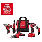 5-Tool Milwaukee M12 12V Lithium-Ion Cordless Combo Kit w/ 2x 1.5Ah Batteries