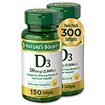 2-Pack 150-Count Nature's Bounty 50mcg (2000IU) Vitamin D3 Softgels