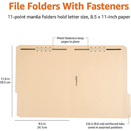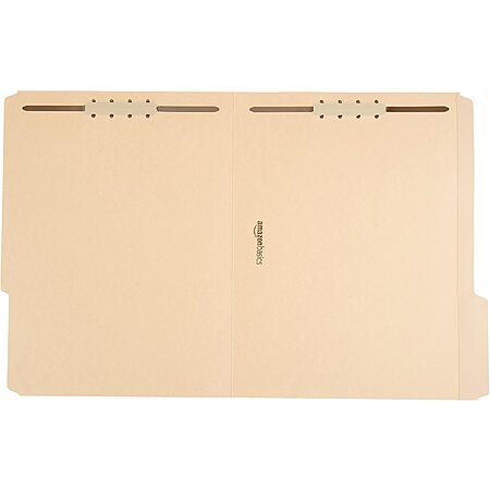 [S&S] $16.81: 100-Pack Amazon Basics Manila File Folders with Fasteners, Letter Size (Light Brown) at Amazon